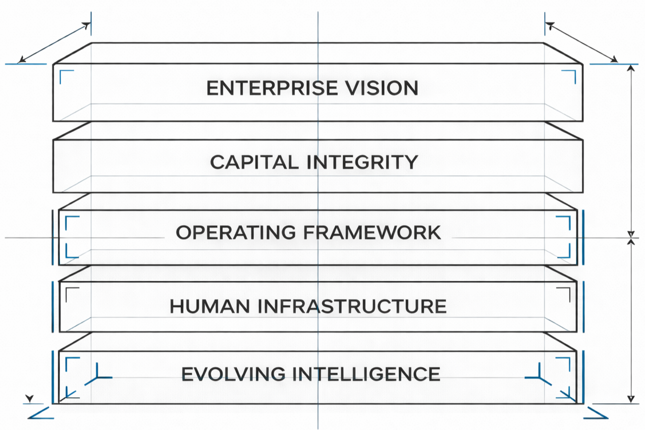We work with private equity firms, family offices, and investment platforms seeking stronger strategic discipline, governance clarity, and operating performance across the organizations they own, back, or oversee. The same framework we use to help entrepreneurs manage multiple holdings scales to investment firms managing portfolios, including work at both the platform level and, where appropriate, within the underlying portfolio companies themselves.